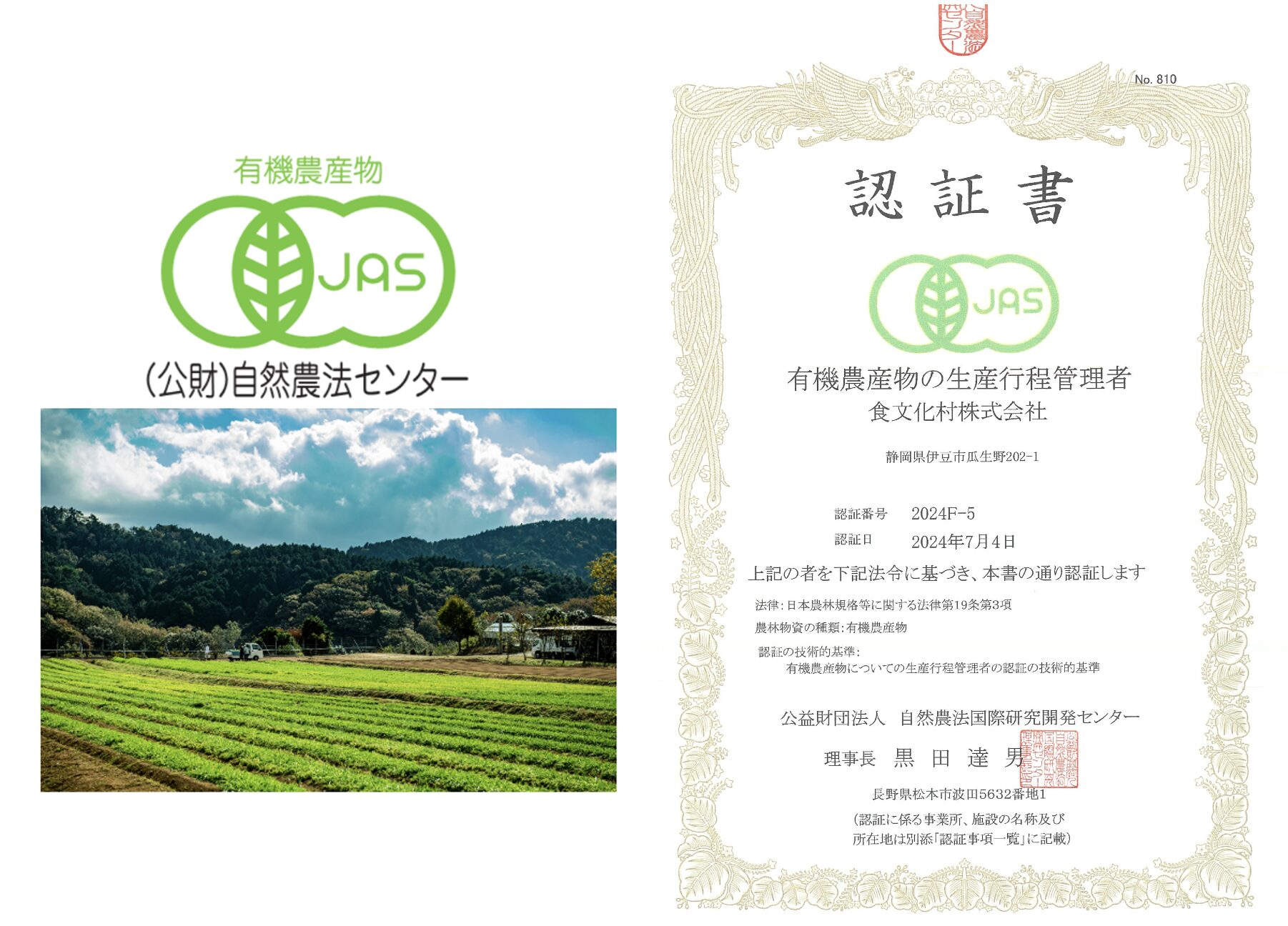 有機JAS認証取得 (冷川農場)