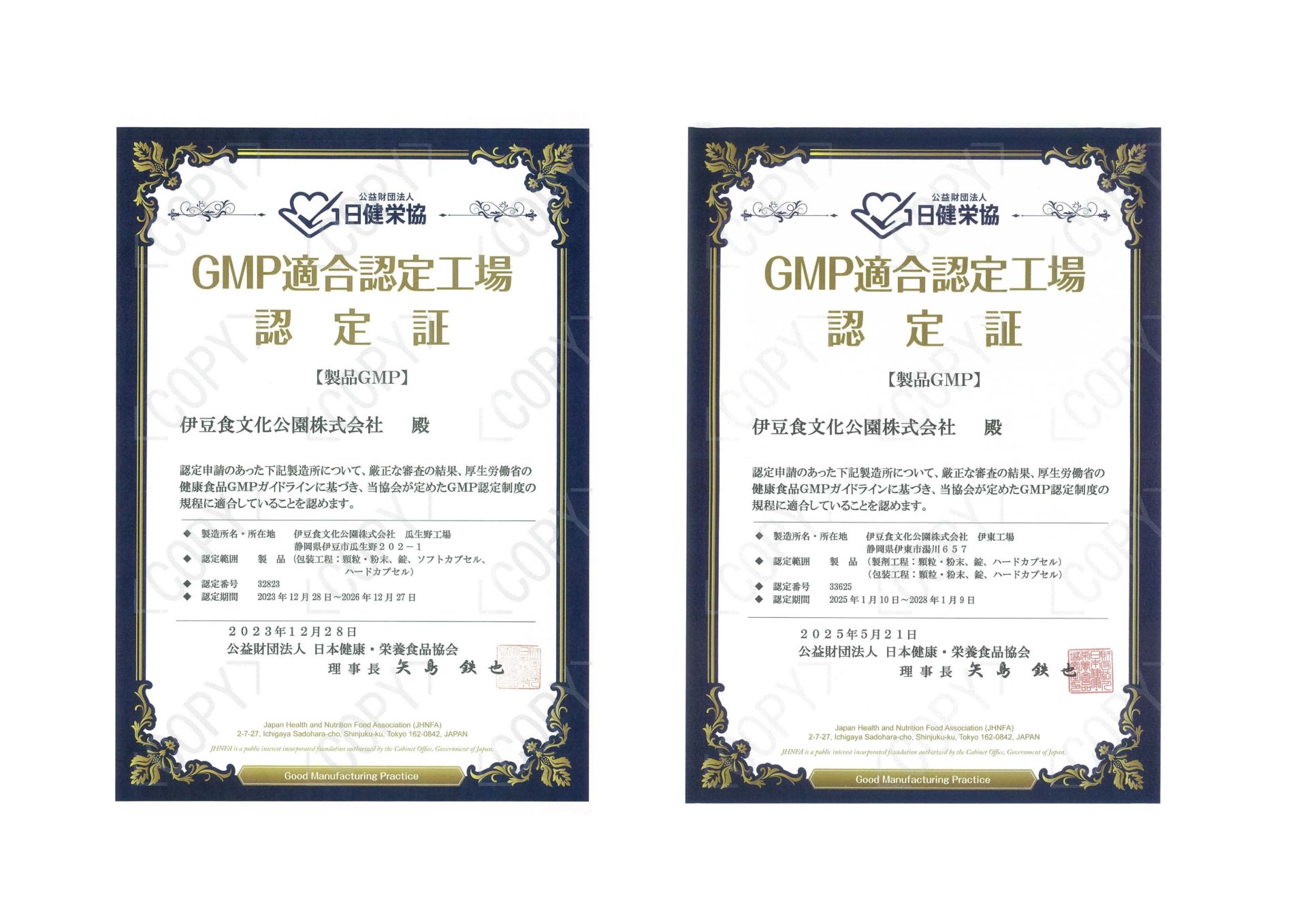 GMP適合認定工場(瓜生野工場・伊東工場)